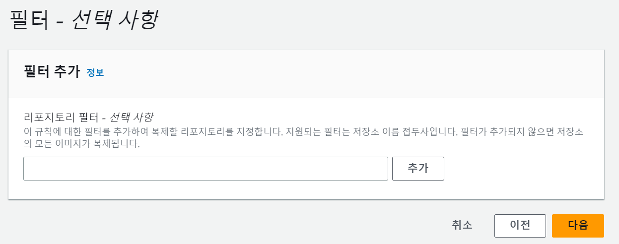 - 여기서 필터를 추가하지 않고 저장하게 되면, push 가 일어나는 모든 레포지 토리의 이미지가복제됨