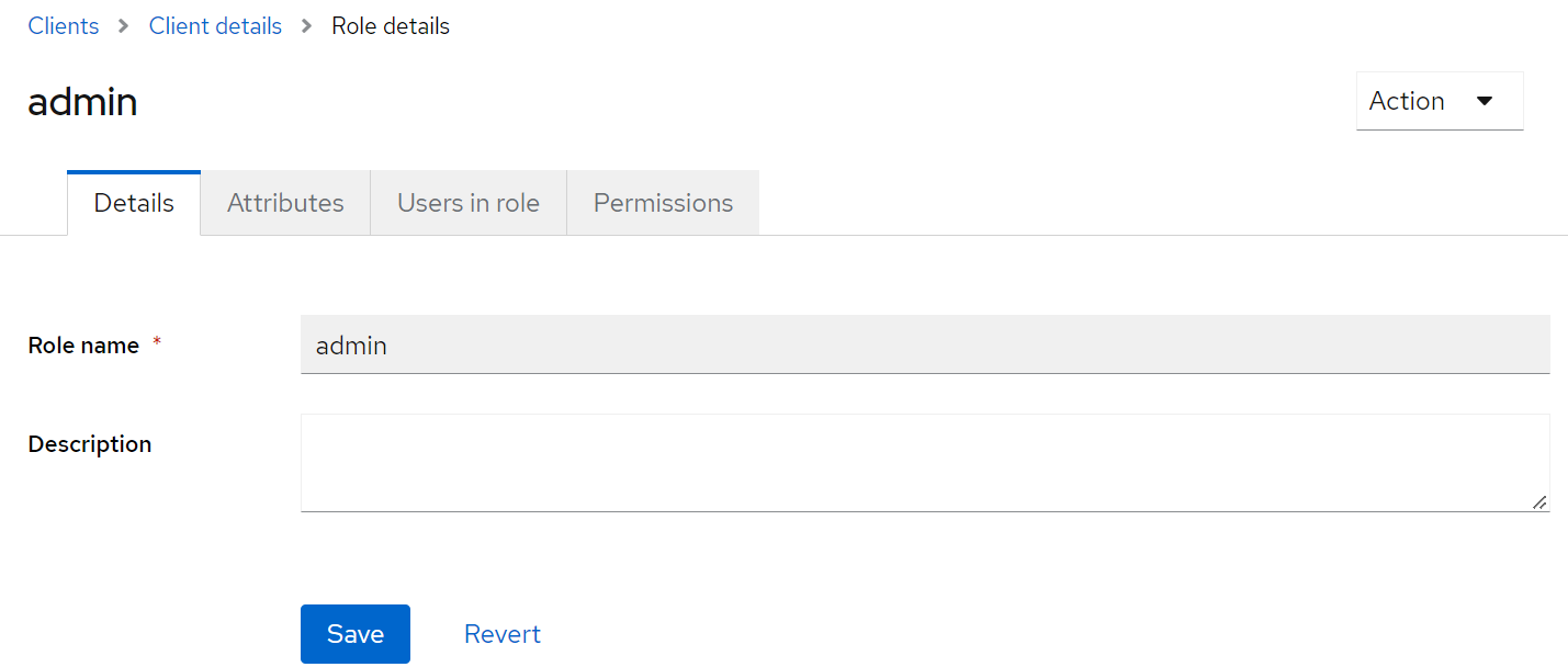 Client role 로 생성한 admin 을 추가